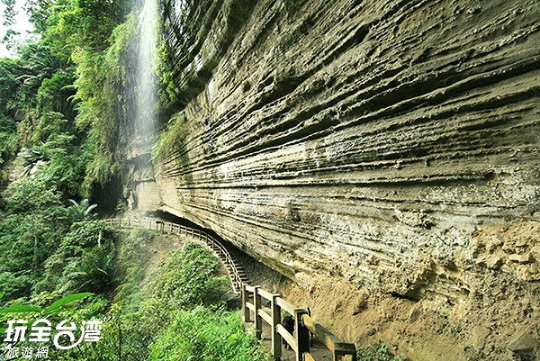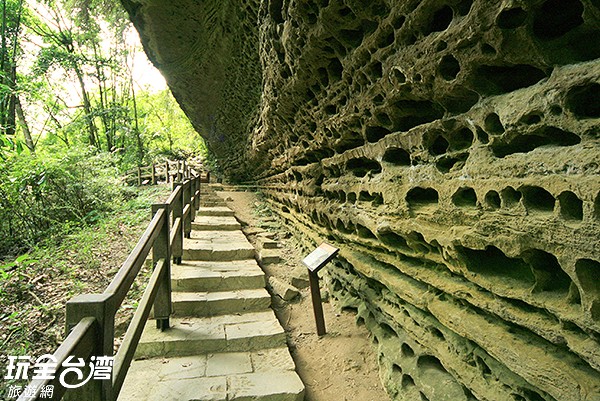 燕子崖位於瑞里風景區步道內,峭壁岩壁上布滿洞穴與岩層紋理,景觀特殊,被稱為「台灣敦煌石窟」。